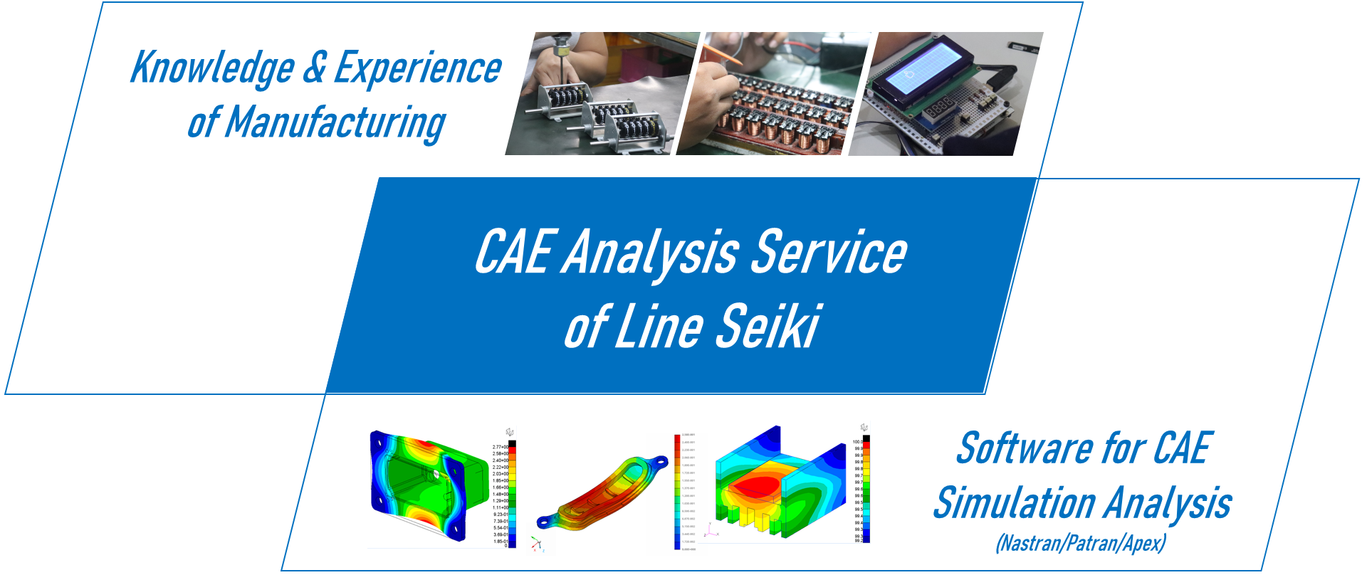 Just count on Line Seiki. We can perform analyses on a range of products: an intricate mechanical product which consists of both plastic and metal parts, a product which has an electronic circuit of PCB, etc. We will conduct CAE simulation services which can only be done by Line Seiki whose expertise and experience of manufacturing has been cultivated over 70+ years since its establishment.