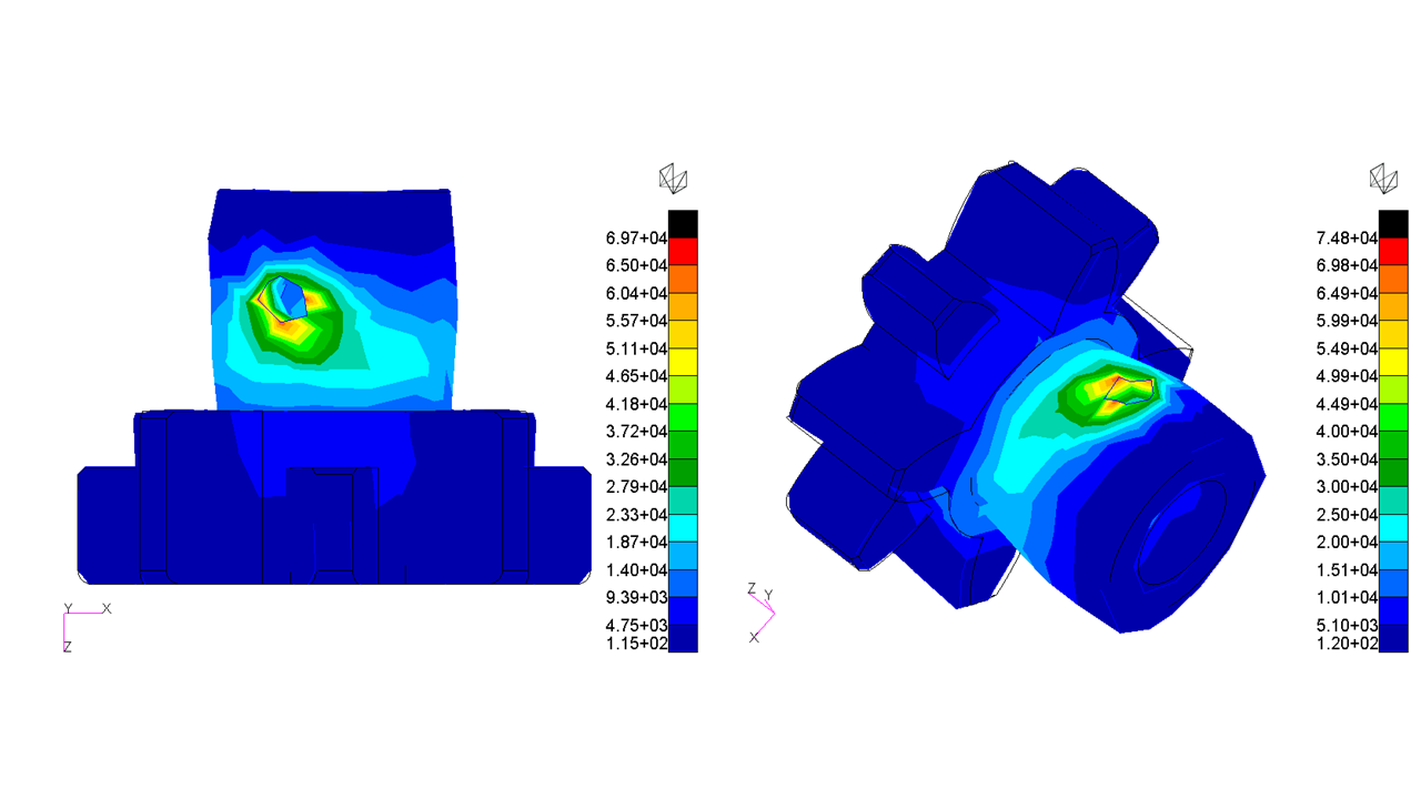 By conducting Structure/Static analysis, it becomes possible to verify the durability of a designed structure and its critical part. It is also notable that sometimes it is very difficult to replicate an environment in which a product under development is to be used. CAE software can virtually replicate such the environment, which is one of the very advantages of the computer simulation. In addition to these benefits, the numbers of prototypes and testing can be reduced, which saves time and costs. This would lead to the optimization of the entire design process, making CAE analysis highly recommended.